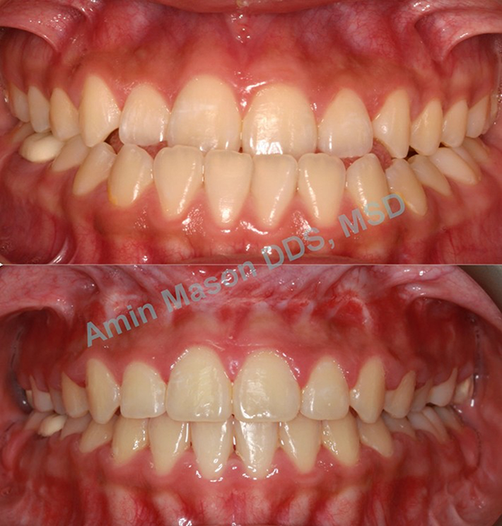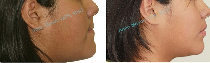 The following patient presented with a class II profile with a deficient lower jaw. Patient refused surgical treatment and elected to only align her teeth.